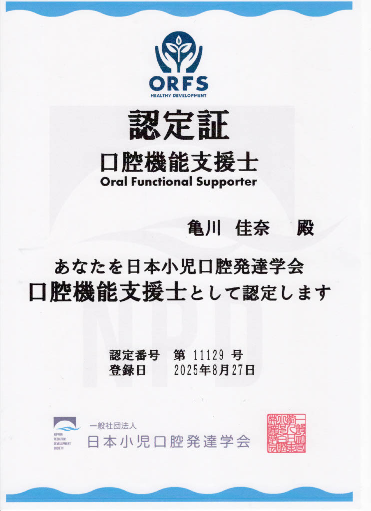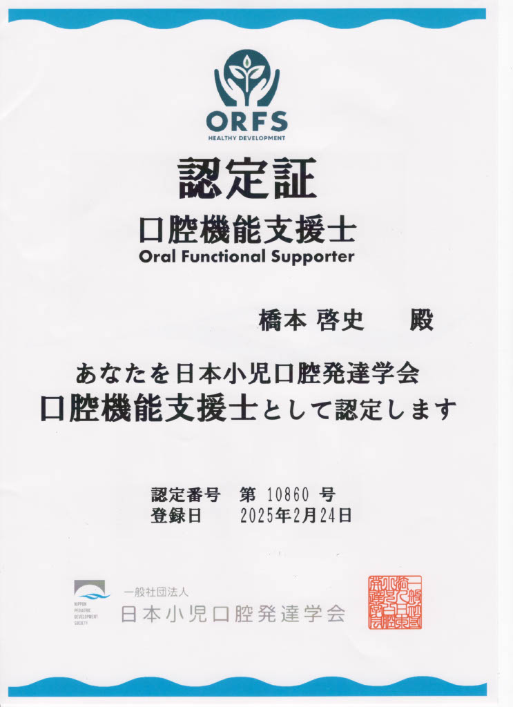 認定資格「口腔機能支援士(ORFS)」を取得したスタッフが在籍